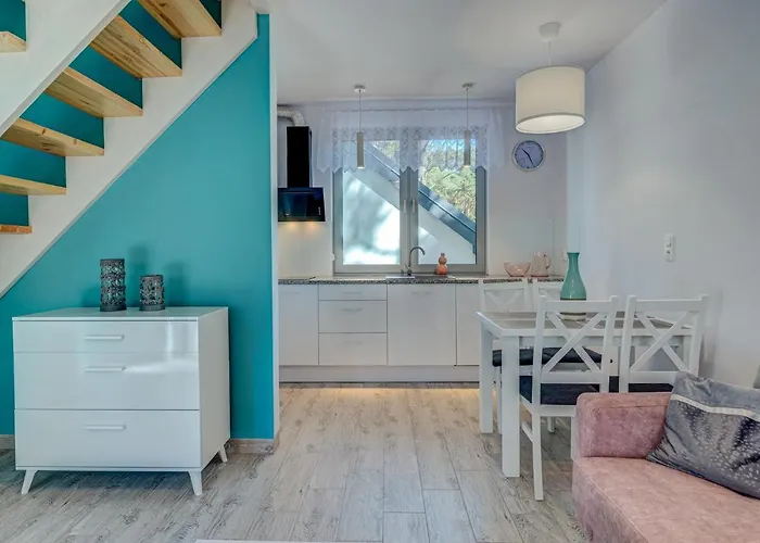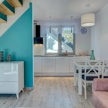 Hay una pequeña cocina con un hervidor eléctrico, una nevera y cristalería, así como instalaciones para comer en la habitación, como servicio de tetera/cafetera. Situada a 400 metros, la estación de autobuses Pogorzelica Wojska Polskiego ofrece opciones de transporte en las inmediaciones. Los huéspedes pueden practicar senderismo y pesca o hacer uso de zona de juegos y jardín.